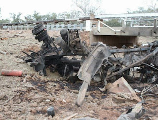 destroyed firefighting vehicles and two bridges, and blew a hole in the