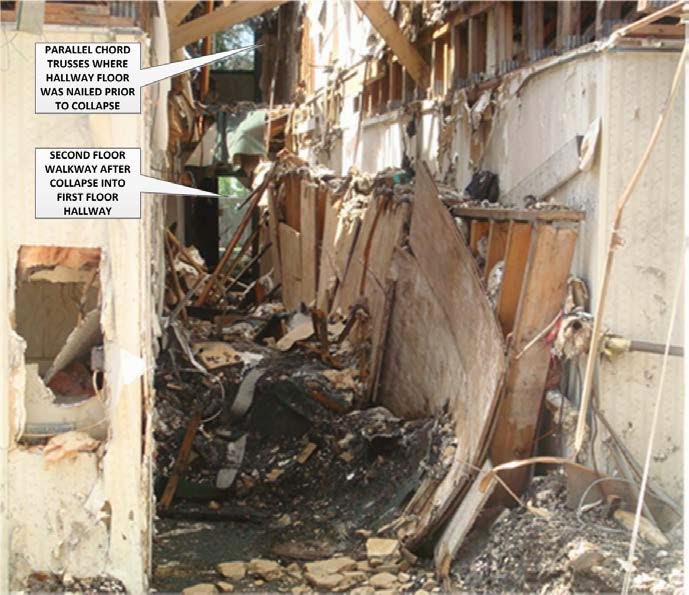 the second floor walkway and possibly the third floor walkway collapsed into