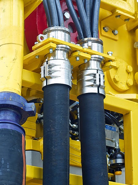 side of the hydraulic hoses. These steel cables will be terminated at the