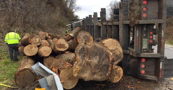 Logging Truck Crashes on I-64 Ramp in Kenova