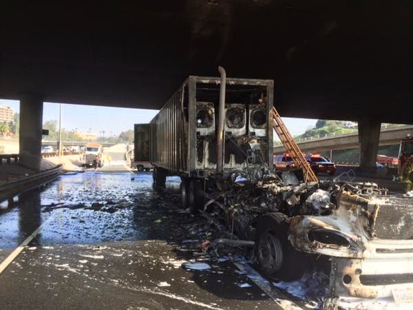 Angeles after a big rig erupted in flames late Tuesday morning, snarling
