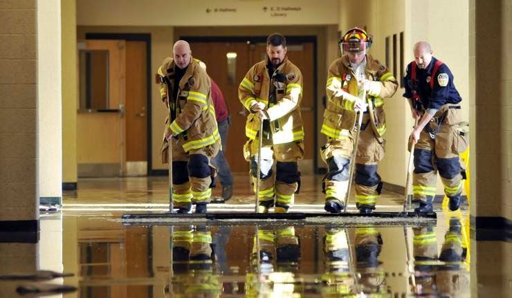 auditorium. He said firefighters helped with the cleanup, sweeping water down