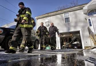 Worcester firefighters exit Marie Hills' house on