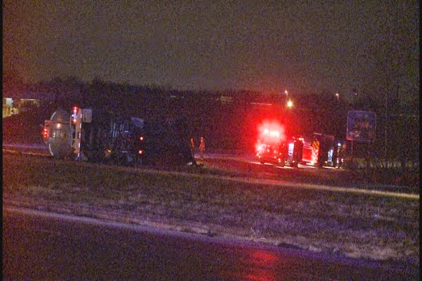 tanker truck overturned right before 2:00 a.m. closing the area from mile