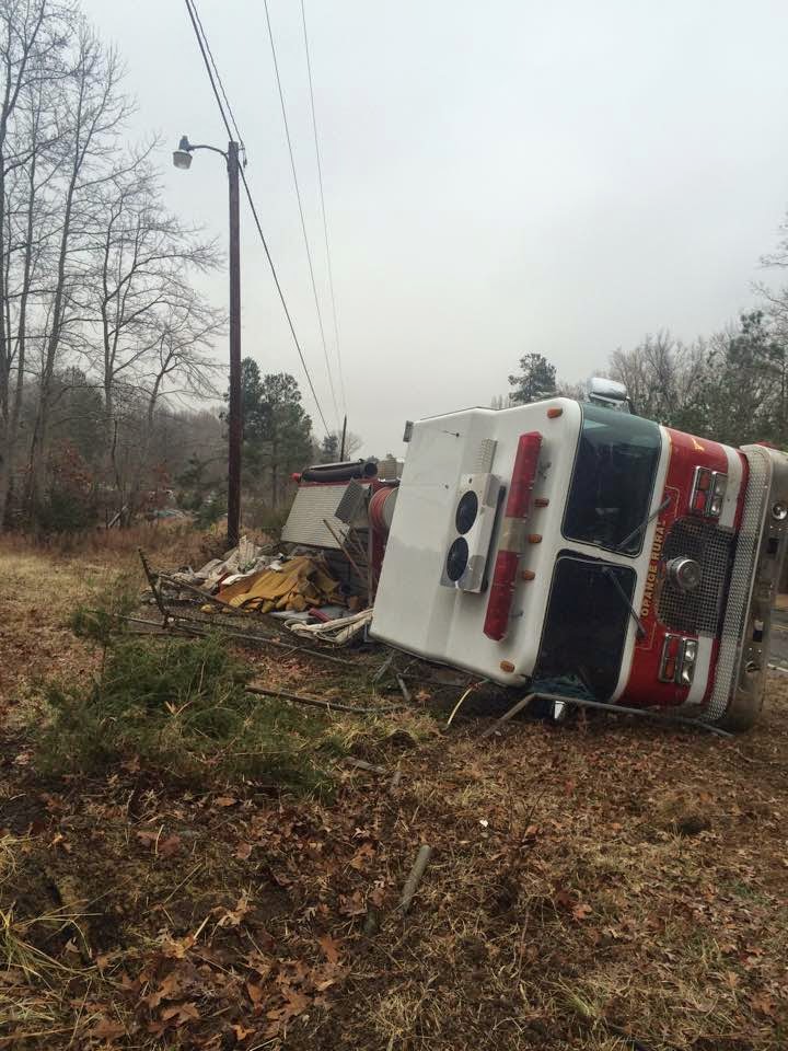 In Orange County, the ice was too much for a fire truck that was responding to an accident when it lost traction and flipped onto its side.