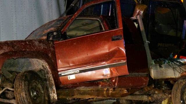 A pickup truck headed east spun out on ice, and a