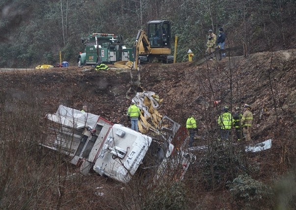embankment, sending two emergency responders to area hospitals with