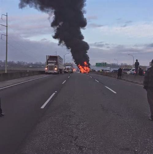 scene of the truck fire on highway 99 south of Vancouver's Massey Tunnel say