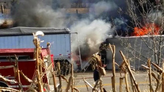 INJURED WHEN SEMI TRUCKS COLLIDE, EXPLODE IN SPENCER COUNTY, KY