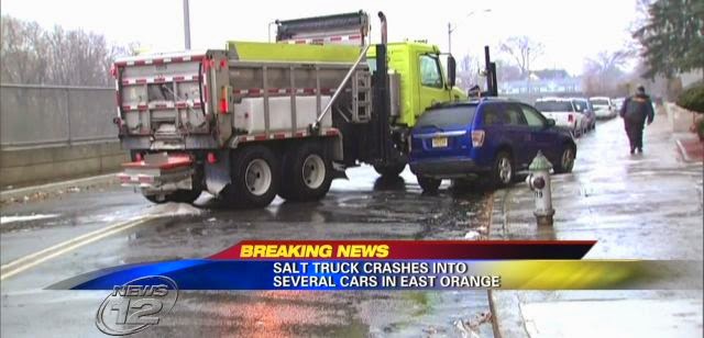 treat icy streets slid off the road and plowed into three cars Sunday morning
