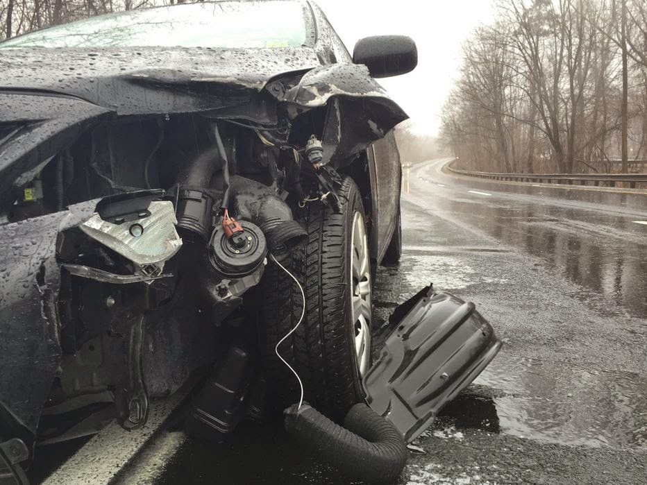 In one of the day's worst accidents, five people were hospitalized after their car overturned on the Taconic State Parkway at the Route 202 exit in Yorktown.