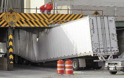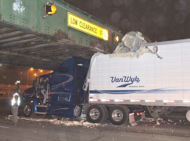 Here are some photos from past incidents in this and other low clearance bridges and overpasses.