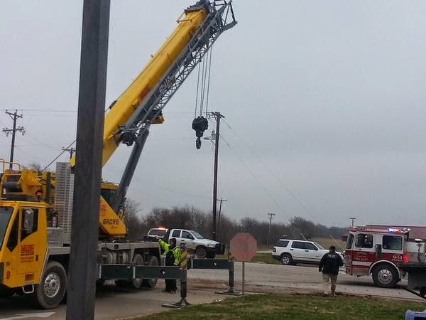 The accident blocked off parts of Old Lorena Road for hours as firefighters called a crane to the scene to lift the commercial truck.