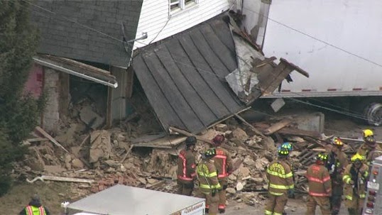 TWO PEOPLE WERE INJURED THURSDAY MORNING AFTER A HEAD-ON COLLISION SENT A BOX TRUCK CRASHING INTO A HOUSE IN UPPERCO, BALTIMORE COUNTY, MARYLAND