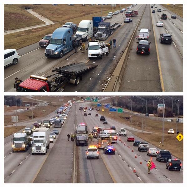 TWO SEMI-TRUCKS, A CAR AND A PICKUP TRUCK WERE INVOLVED IN A CRASH IN I-35 IN EDMOND, OKLAHOMA