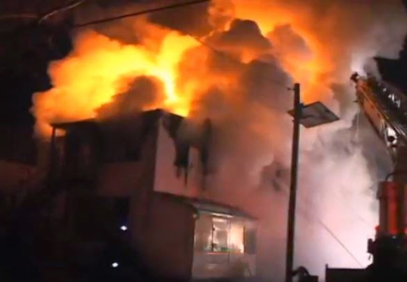 Heavy fire shot out the windows and roof of a two-family home in the 200 block of North Day Street just before 2 a.m.