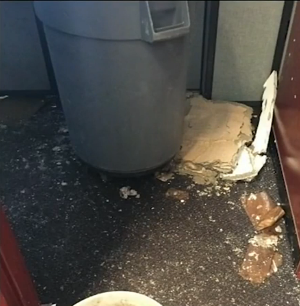 after the pipe burst in the ceiling of a high school office.