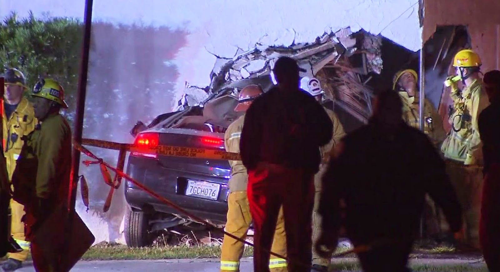 The car was later removed from the scene by a tow truck.