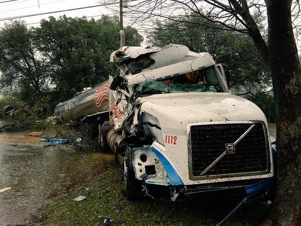 DRIVING A BIG RIG IS THE EQUIVALENT OF HOLDING A LETHAL WEAPON. YOU CANNOT TEXT, SPEED, TALK, EAT, DRINK, OVERCORRECT, FALL ASLEEP, BE TIRED, ETC WHILE YOU ARE DRIVING IT; OTHERWISE, DISASTER WILL STRIKE: Driver chokes on popcorn, big rig crashes into neighborhood.