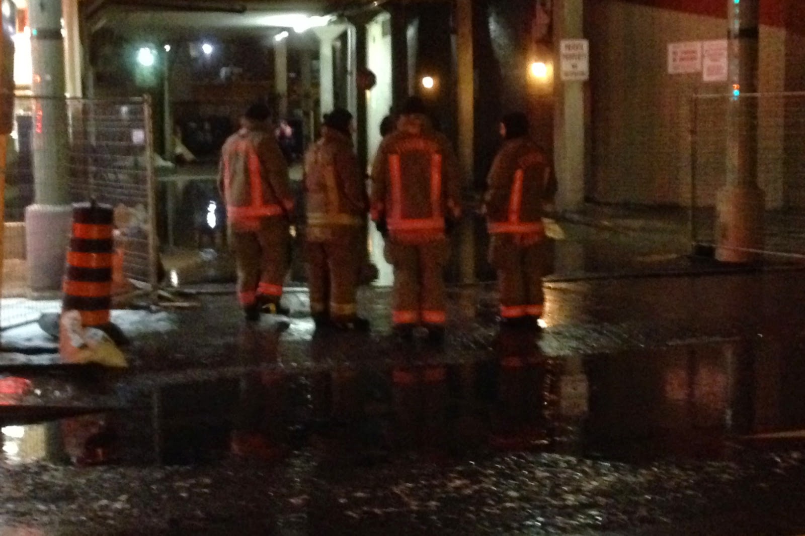 location, near Yonge and Wellesley streets, flowed onto the street.
