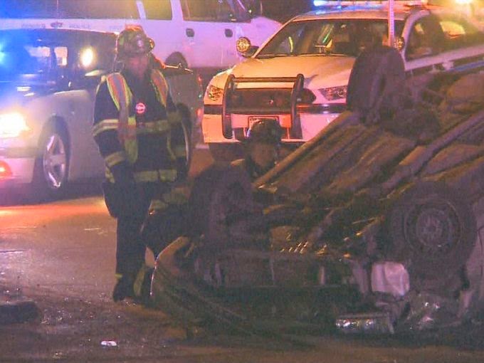 One of the vehicles involved flipped over.
