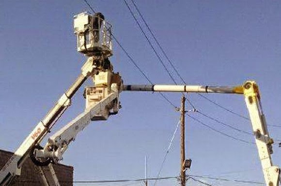 The man was carrying out a test procedure on a 60 foot Elliot V60 telescopic truck mounted lift out in front of the premises of National Crane Equipment Rental on Hudson Street around 8 a.m when he strayed too close to the wires. The emergency services and local utility PSE&G came to his rescue and cut the power so that he could be brought down safely.