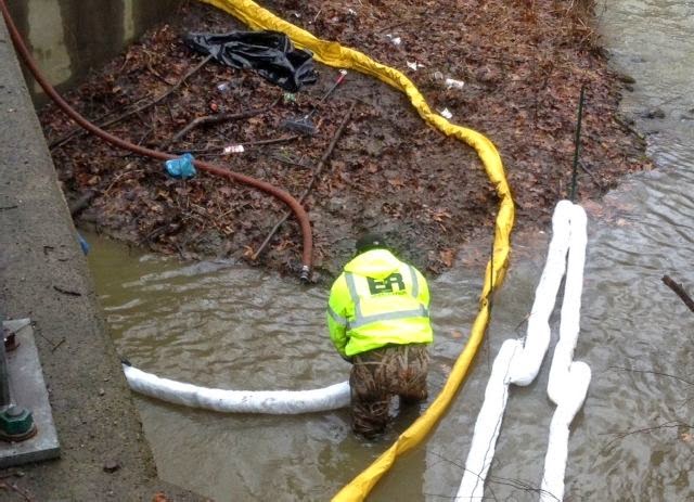 unit has established containment points in the drainage ditch using booms and a