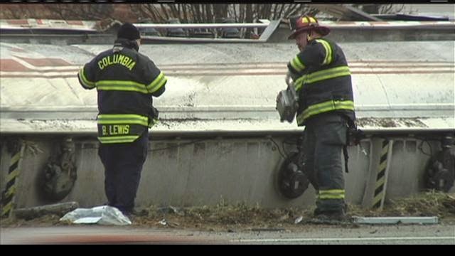 spilled its load. Hazmat and fire and rescue workers were on scene due to the