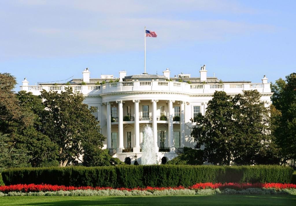 agent at an entrance to the White House with an object wrapped in a shirt and