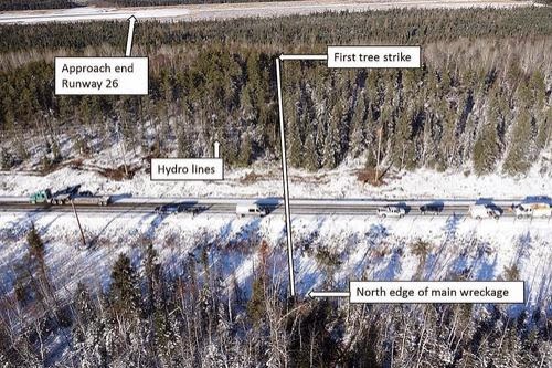trees along with some power lines, and was destroyed by a post-impact fire. Two