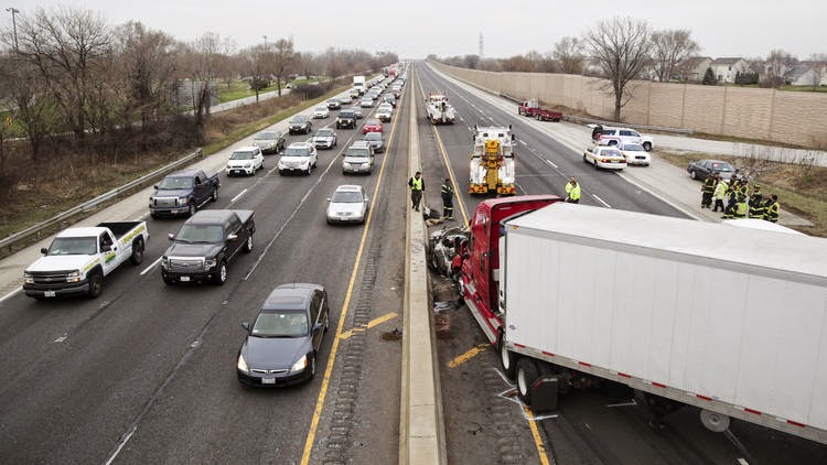 semi-trailer traveling northbound on I-55 near Lockport Road struck a 1999