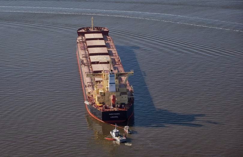 fuel-like substance spilled into the water from the bulk carrier. The Coast