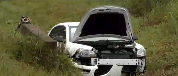 The impact sent the vehicle in a nearby ditch. It appears