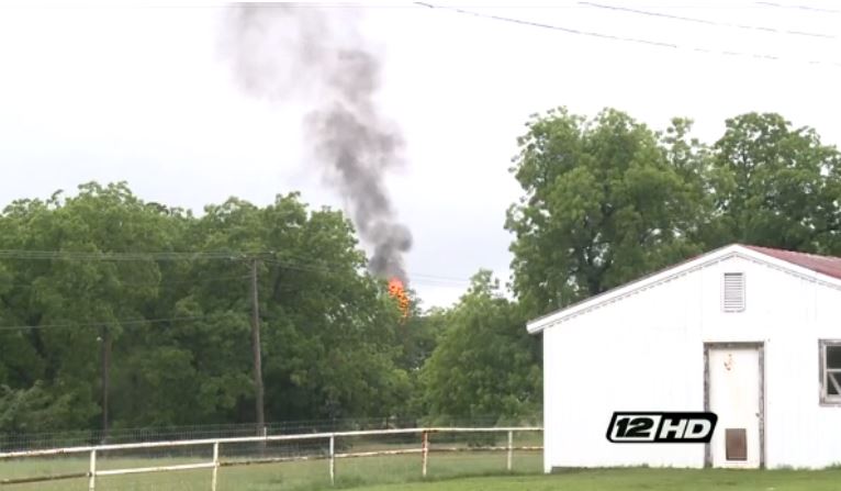 A fire caused after an explosion at a Sherman gas plant is