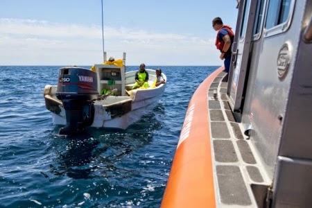 Mexican nationals aboard a lancha after crews in Coast Guard aircraft