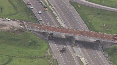 Interstate 55 in Macoupin County, Illinois after a construction worker fell off