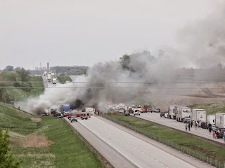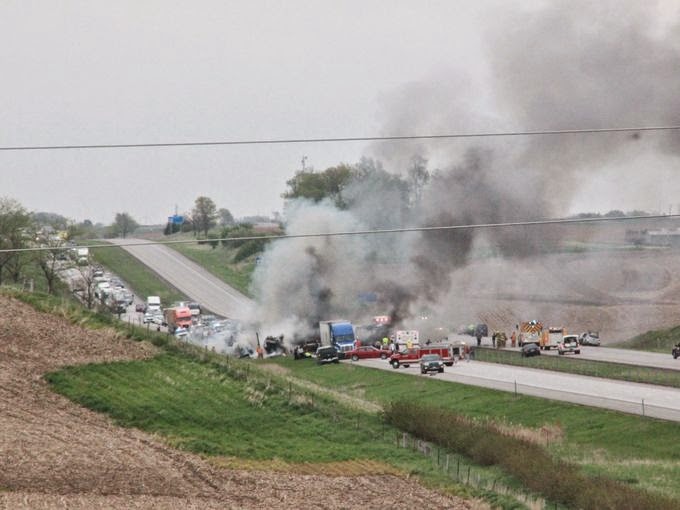 Multiple fiery crashes injured more than 30 people on