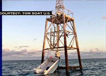 vessel struck the tower about three miles away from Elliott Key around 5 a.m.