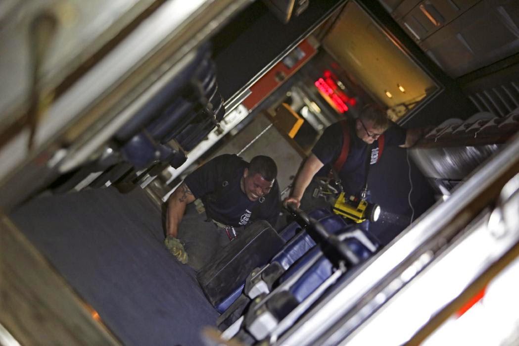 She said she "flew across the train" and landed under some seats that had apparently broken loose from the floor.