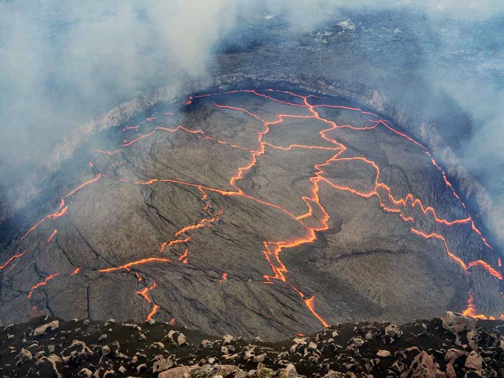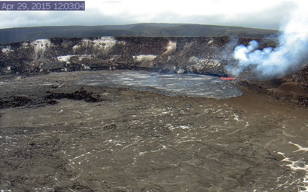 Since then, the flows have been brief and slowing down as the lava lake level fell and lava subsided back into the Overlook Crater. No change in lava spattering or surface circulation patterns have been seen.