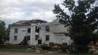 - Holy Cross, Iowa: Roof blown off a school building