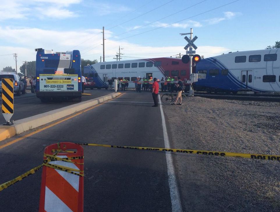 There were approximately 90 people on the train when the crash occurred, and none of the train passengers were injured. Utah Transit Authority loaded those passengers on to buses.
