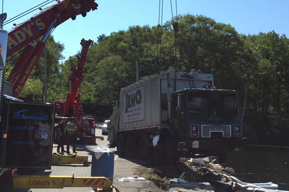 Workers removed the truck from about 20 feet of water using heavy towing machinery. It will be taken to Coady’s Towing in Lawrence, where State Police will inspect it. They will search for any evidence of a mechanical or electrical issue that may have led to the crash, police said.