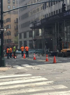 "There was a loud noise and my sister and I went to the window and we saw a lot of smoke," said one witness. "After the smoke dissipated we saw the remnants of a construction container, where it was broken clearly. And a bunch of construction workers ushering people away."