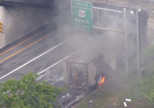 the right shoulder after blowing out a tire, said South Nyack-Grand View police