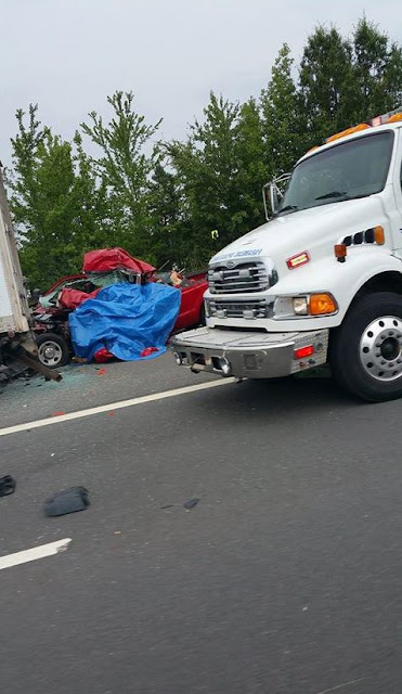 One person is dead after a crash in Greensboro involving a truck and a tractor-trailer.