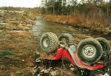 when his Honda ATV, for an unknown reason, ran off the west berm of the