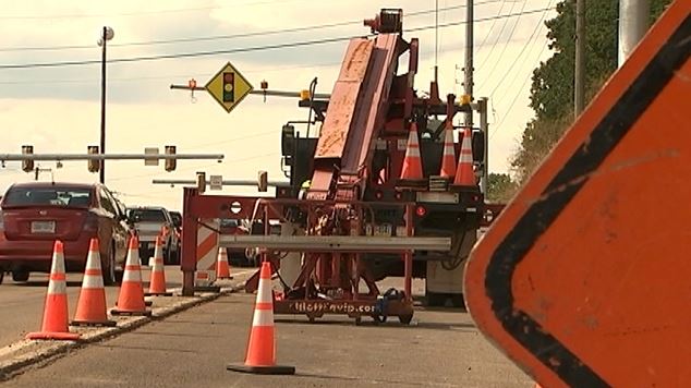 There were two people in the bucket who were working on an overhead sign when the accident occurred.