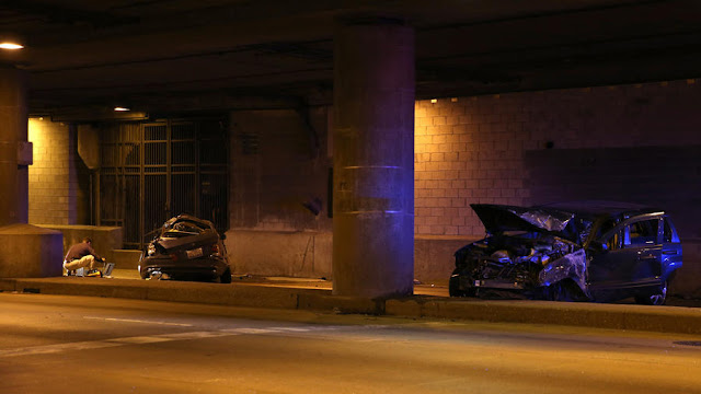 The crash occurred about 3:22 a.m. near North Garvey Court and West Lower Wacker Drive, according to police and fire officials.