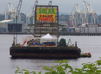 barge Solar Pioneer in place as the activists protested Shell’s Polar